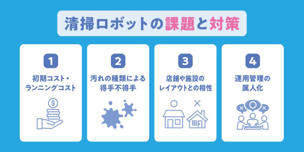 ロボット導入にはメリットが多い一方で、現場運用を考えるといくつかの課題があります。ただし、それぞれに対策が用意されているため、ポイントを理解しておくことで導入効果を最大化できます。