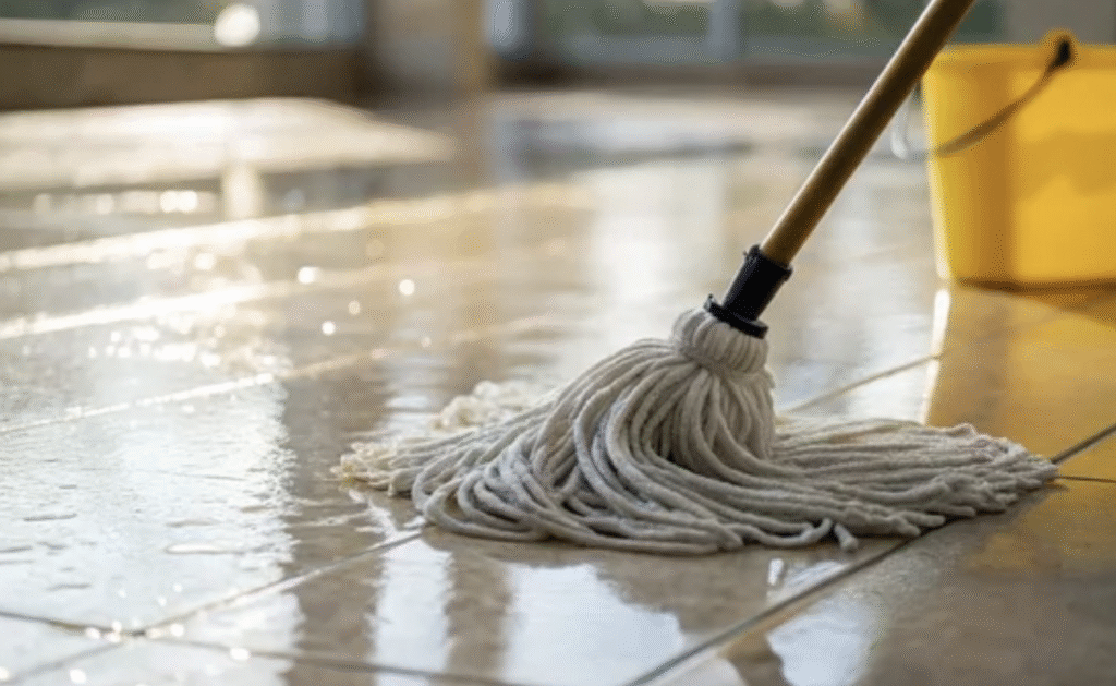 モップ掛けは体力的な負担が大きく、特に冬場は冷たい水を使うため、身体への負担だけでなく手荒れや体調不良の原因になることも。また、繁忙期には接客や調理でスタッフが手一杯になり、清掃の時間を確保できないことも多々あります。