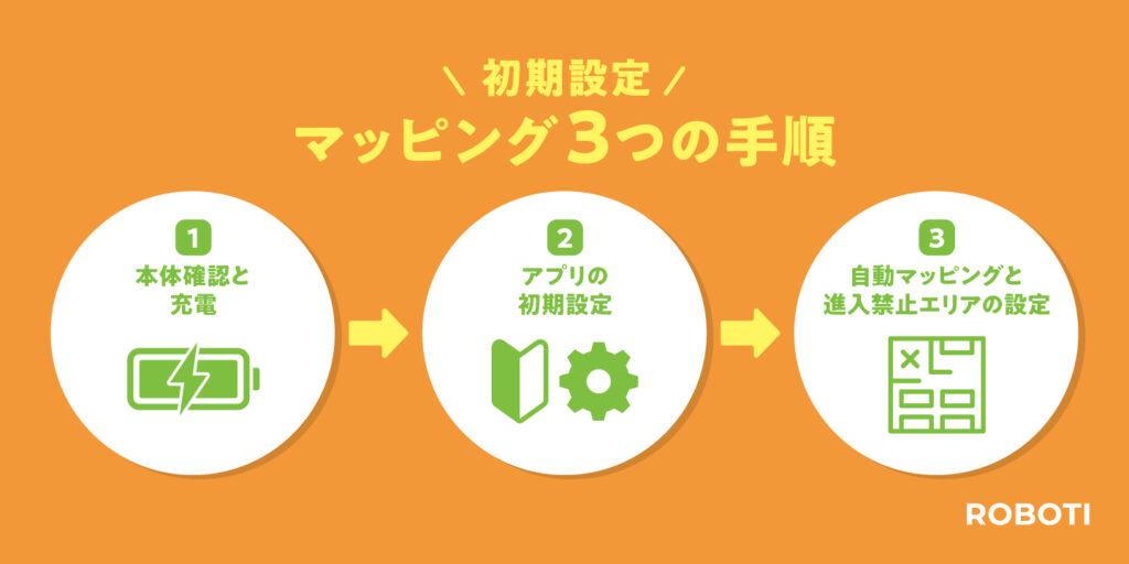 まずは同梱のマニュアルを確認し、ロボット本体に傷がないか、付属品の欠品がないかをチェックします。問題がなければコンセントに接続し、電源をONにして充電を開始しましょう。初期設定は、ある程度充電が進んでから行うのが確実です。